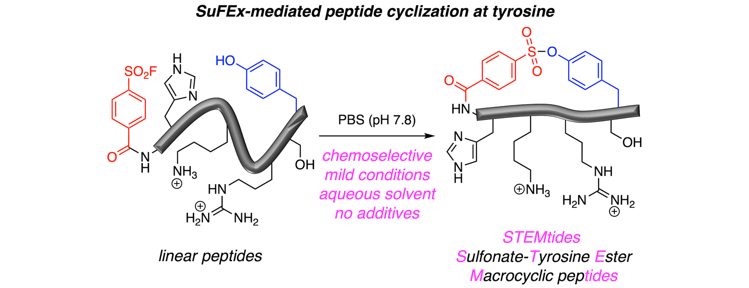 Chemoselective sulfonyl fluoride exchange (SuFEx)-induced macrocyclization of tyrosine-containing peptides in aqueous media