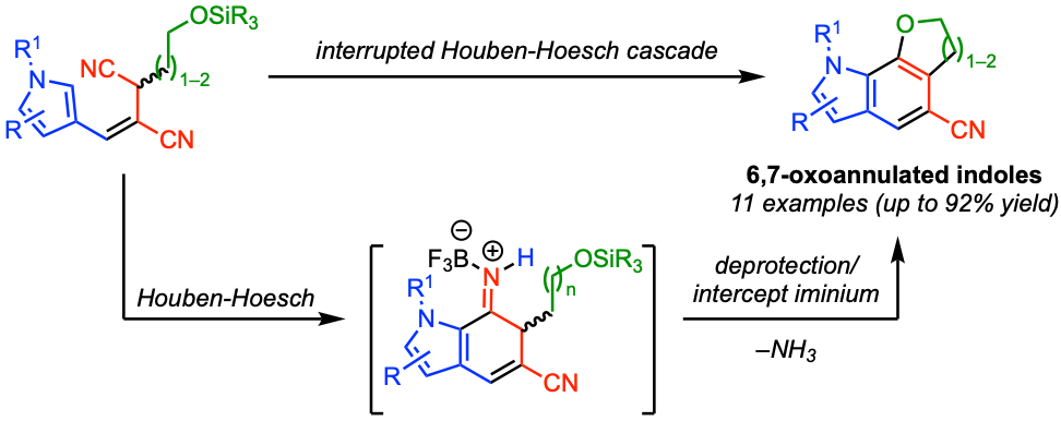 Interrupted Houben-Hoesch Nucleophilic Cascade Strategy for the Synthesis of 6,7-Oxoannulated Indoles